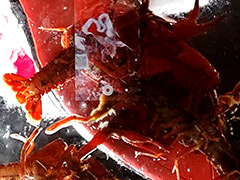 ここまでしてくれるモデルさんはなかなかいないので貴重な映像です…潰した後も親指と人差し指で挟んでぐちゅぐちゅ♪どんどん潰していきます。今までで一番柔らかく、踏み潰しやすいらしいです。あはは、真っ二つの子と一緒に踏んであげ…