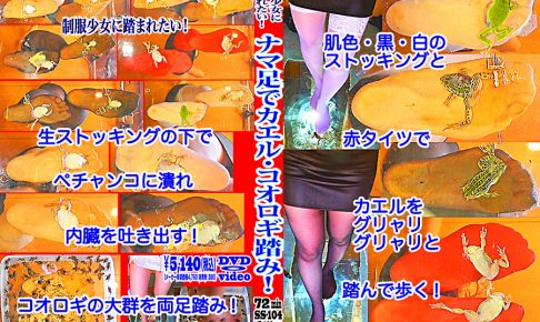 ツキメ様の肌色・黒・白の生ストッキングと、赤タイツがトノサマガエルをグリャリグニャリと踏みにじって歩く!少し踏まれたくらいではカエルは死なない。足の下から解放されるとピョンピョン跳ねる!内臓を吐き出して動かなくなるまで何…